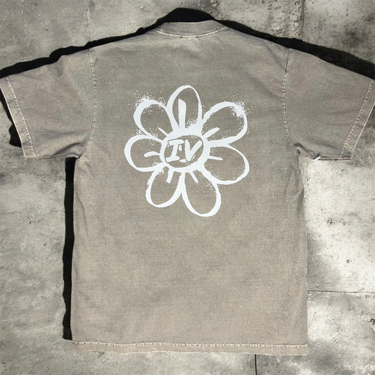 Oversized Premium Floral Tee (GRY)